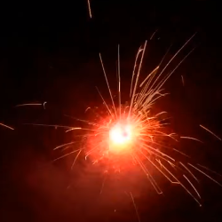 Вертится, образуя круг красного, зеленого, желтого огня, в конце разлетается трещащими искрами.
